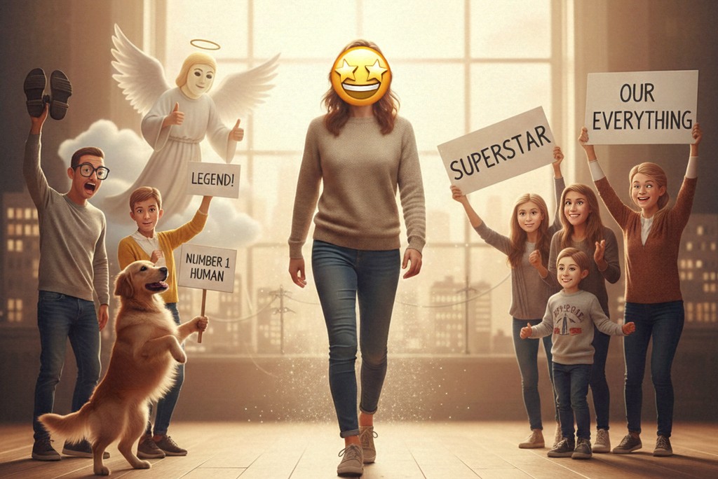 Sweetheart, you & I both know the “behind-the-scenes” footage—the flaws, the doubts & those awkward moments when we trip over our own feet or completely shit our pants. While we’re staring at the mess, they’re standing there in the front row, holding up “Number One Fan” signs & admiring the masterpiece. They’re completely convinced we’re the most wonderful thing they’ve ever seen, even while we’re still just trying to figure out how to carry it all..🤣