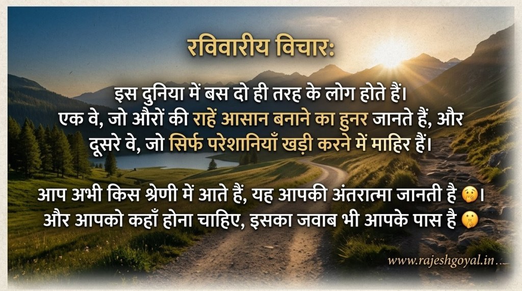आज रविवार है—ठहरने, भीतर झाँकने और उन छोटी छोटी बातों को समझने का दिन, जिन्हें हम भागदौड़ में अक्सर भुला देते हैं। क्या आपने कभी इस बात पर गौर किया है कि आपके जीवन में जो यह सुगमता है, सुकून है, जो बिना माँगे मिली सुख-सुविधाओं की विरासत है, ठंडी हवा का खुशबू भरा झोंका है वह केवल आपकी अपनी दौड़-धूप का नतीजा नहीं है?