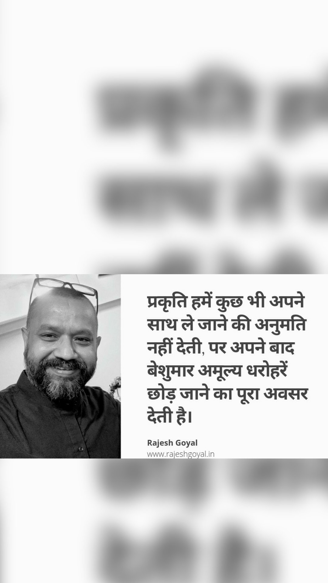प्रकृति हमें कुछ भी अपने साथ ले जाने की अनुमति नहीं देती, पर अपने बाद बेशुमार अमूल्य धरहोरें छोड़ जाने का पूरा अवसर देती है।
