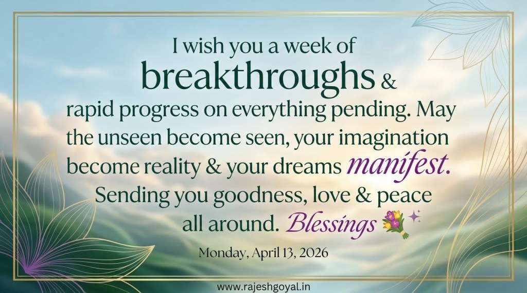 I wish you a week of breakthroughs & rapid progress on everything pending. May the unseen become seen, your imagination become reality & your dreams manifest. Sending you goodness, love & peace all around. Blessings 💐