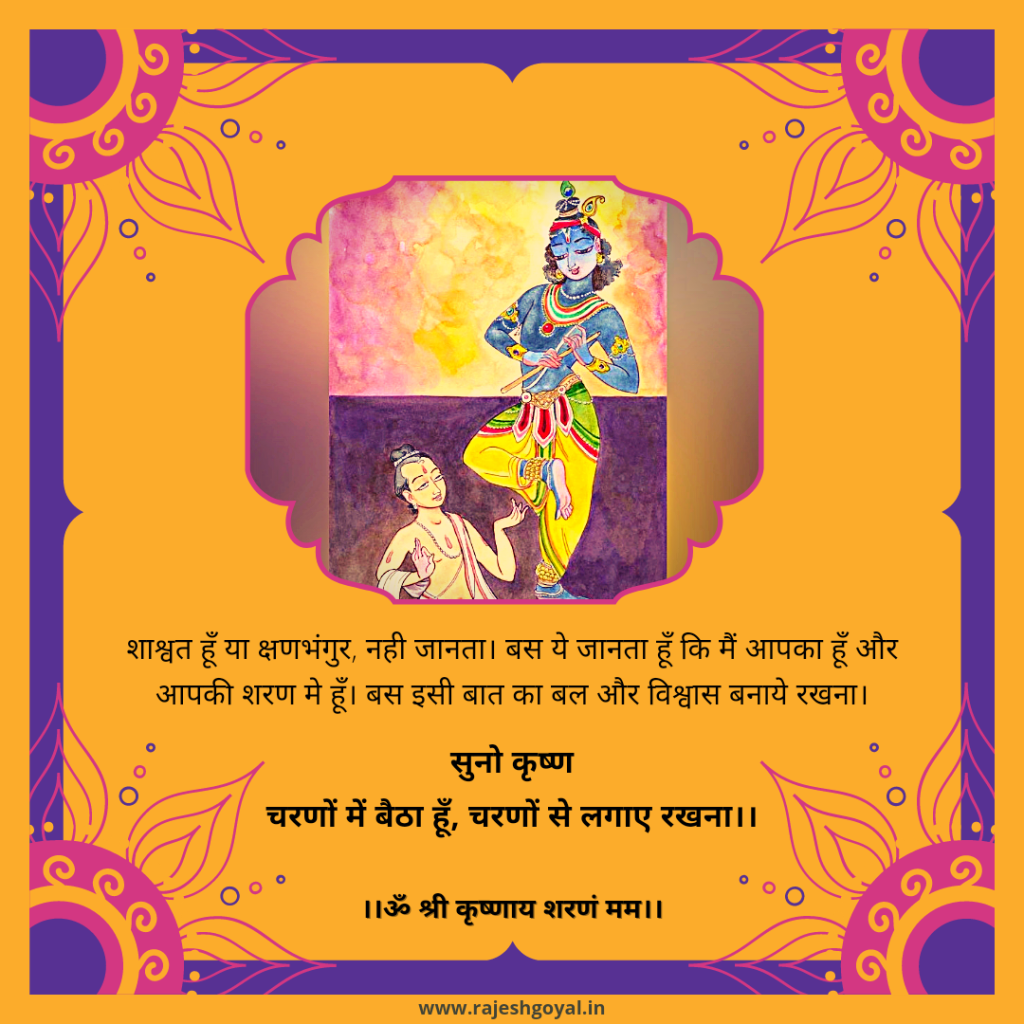 मगर जैसे ही हम अपनी नकारात्मक सोच, कपट-व्यवहार तथा विकृत मानसिकता को त्याग कर अपने शुद्ध आत्मभाव मे आ जाते हैं, जैसे ही हम भगवान के साथ एकता स्थापित कर लेते हैं, उसी क्षण उनका आशीर्वाद प्राप्त हो जाता है, शरण प्राप्त हो जाती है, उसी क्षण हम निर्भय हो जाते हैं, अमृत उपलब्ध हो जाता है, सब जगहें प्रकाशित हो जाती हैं तथा उसी क्षण से ह्रदय में शांति और आनंद का स्त्रोत बहने लगता है।